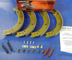 ( inc. VAT at 20%) Axle set of 4 10inch brake shoes by Mintex plus 4x pull-off springs, 6x imperial brake drum screws, 2x metric brake drum screws, 2 locking plates and 4 screws for anchor plates.