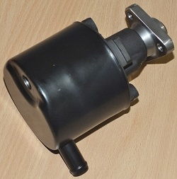 Description: OEM power steering pump. Output via banjo connector to rear, input via 16mm(5/8") spout to side. Takes 3 bolt (M8) pulley, and has 4c M6 mounting holes.